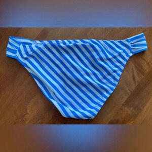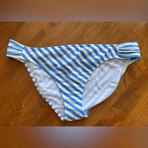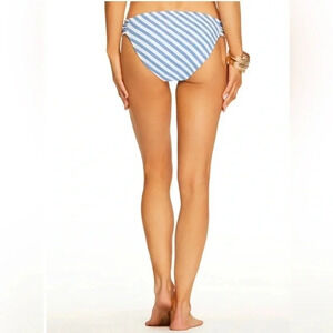 Jessica Simpson Lickity Split Side Shirred Bikini Swim Bottoms Blue White XL NEW
