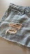 These light blue jean shorts feature a relaxed cut-off style with frayed raw edges and noticeable distressing, including a rip on one leg. A decorative crochet lace patch with a floral pattern adds a unique touch to the vintage aesthetic. Perfect for casual outings and festivals, these shorts combine comfort with stylish flair. Preowned and as pictured. Great condition.