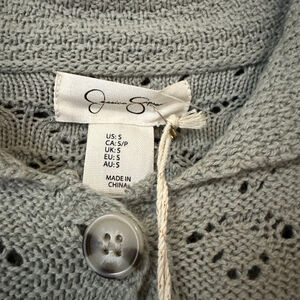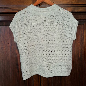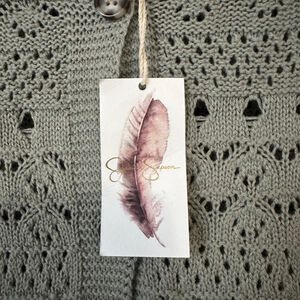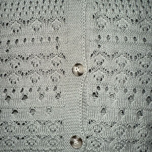 Chic short sleeve cardigan. Delicate knit pattern. Button closure. Ideal for layering.