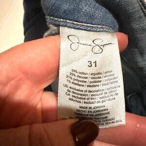 Add a stylish touch to your wardrobe with these Jessica Simpson light wash jeans! These women's size 31 jeans feature a trendy roll cuff and a flattering tapered ankle cut. The light wash denim gives them a classic, versatile look that can be dressed up or down. They are in great condition and ready for a new home. Don't miss out on this opportunity to own a pair of fashionable and comfortable jeans! Grab them now before they're gone!