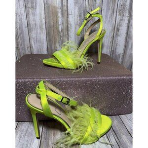 These Jessica Simpson Lime Green Neon Pumps are a vibrant and stylish choice for women's footwear. With an open toe design, ankle strap closure, and ultra-high stiletto heel, these pumps are sure to make a statement. The neon yellow-green color adds a bold touch to the overall look, perfect for adding a pop of color to any outfit. Made of synthetic material, these pumps are from the Jessica Simpson Dany model, offering a trendy pump style with a unique neon theme. Perfect for those looking to stand out with a high-fashion heel option in a size 7M. In good used condition have some marks on heel and inside sole please check pictures no box