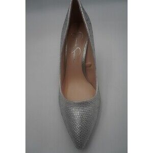 Pre-owned without tags or box Jessica Simpson Lindiza Silver Sparkly Rhinestone Pointed Toe Stiletto Pumps 8M. Make a dazzling impression with the Jessica Simpson Lindiza Silver Rhinestone Stiletto Pumps. These glamorous heels are adorned with sparkling rhinestones that catch the light beautifully from every angle, adding a luxurious and eye-catching finish to any outfit. Featuring a sleek pointed toe and a slim stiletto heel, these pumps create an elegant silhouette that elongates the legs while delivering modern sophistication. The slip-on design ensures easy wear, while the cushioned insole adds comfort for extended events or nights out. Perfect for weddings, parties, proms, or any special occasion, these stunning silver pumps elevate your look with bold, show-stopping style.