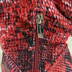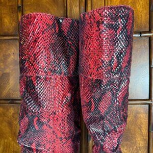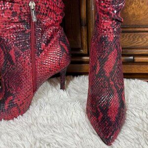 Jessica Simpson Loury Wicked Red Nuevo Stretch Python Textured Faux Leather Boot