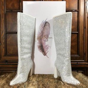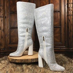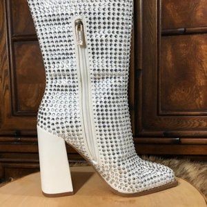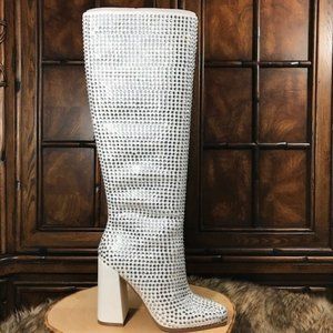 Your new go-to BOSS boot! From the rockstar sparkle, chucky comfortable yet sexy high heel, sleek black base, this beauty is an absolute must have showstopper.