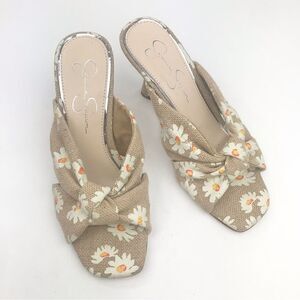 Jessica Simpson MAYXIE Floral Burlap Slip on Heeled Sandals