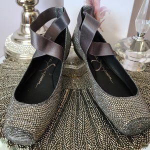 Jessica Simpson Mandalay - Pewter Glitter Gabor Ballet Flat SZ 5.5. Condition is New with box. Comes from non-smoking home