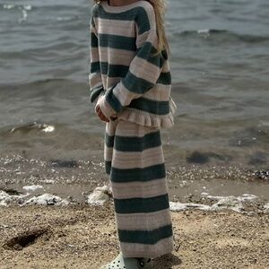 Stylish kids matching set. Features green and cream stripes. Comfortable and trendy design. Worn once. Perfect condition. Bundle to save!