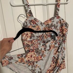 Stylish floral swimsuit set with a beautiful pattern. Features a mix of colors for a vibrant look.