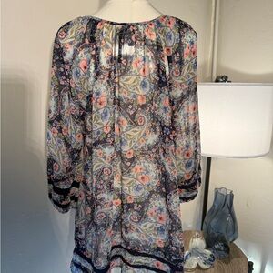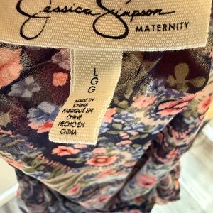 Jessica Simpson Maternity Floral navy, pink, purple sheer top- Large