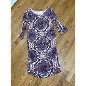 Jessica Simpson Maternity Midi 3/4 sleeve Dress, Pink, Purple, Patterned Size L