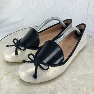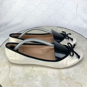 - Description: Jessica Simpson Matini Womens Sz 7 Metallic Gold/Black Bow Detail Ballet Flat