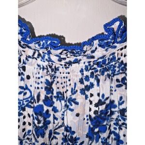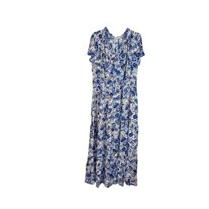 Jessica Simpson Maxi Dress Size 3X Blue & White Floral with Tie Tassels
