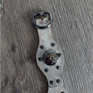 Jessica Simpson silver metallic leather belt, size Medium. Hammered center metal medallions