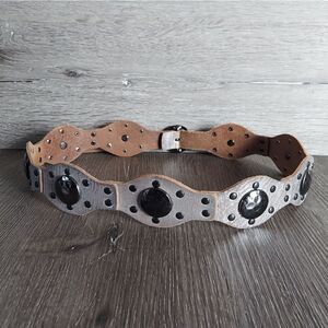 Jessica Simpson Medium Genuine Leather Embellished Studded Metallic Belt