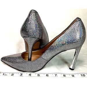 Jessica Simpson Metallic Stiletto Pumps Silver 9.5 Disco Party Heels Iridescent