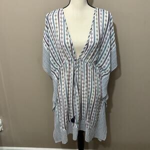 Jessica Simpson Moroccan Stripe Drawstring Tassels Caftan Swim Cover-Up Size M