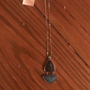 Jessica Simpson silver tone aqua and dark blue double stone pendant necklace. Never worn.