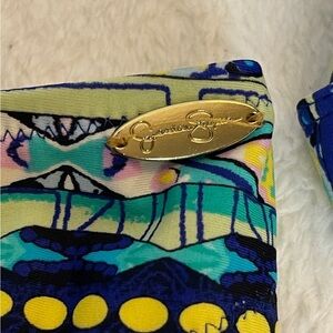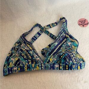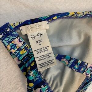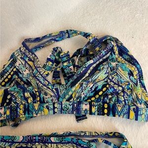Vibrant bikini with geometric patterns. Adjustable straps for comfort. Perfect for beach days.
