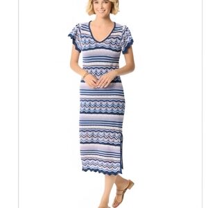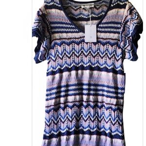 Chic knit top with multicolor stripes. Features a round neckline. Ideal for layering.