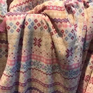 Stylish robe with vibrant patterns. Features pink, blue, and cream hues. Soft and elegant design.