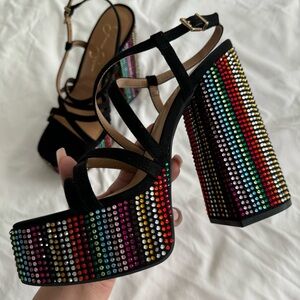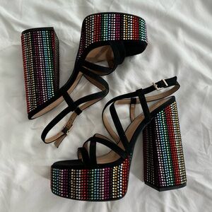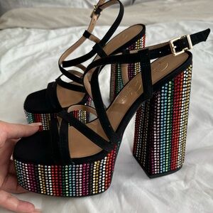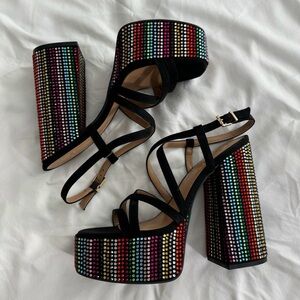 Stunning multicolor rhinestone platform heels. Perfect for adding a touch of glamour to any outfit. New, no tag no box. Size 8.5