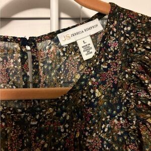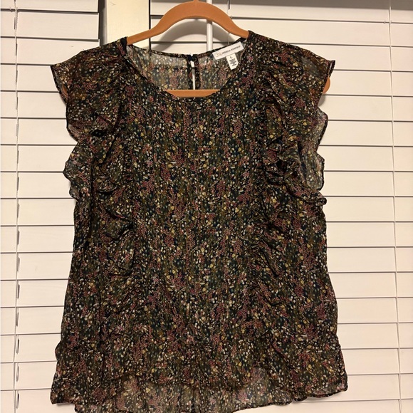 Elegant blouse with ruffle details. Multicolor floral pattern. Lightweight and stylish.