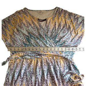 Jessica Simpson Muti-Colored Faux Wrap Dress V Neck Chain Accent, Size 12
