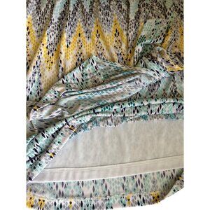 Chic and vibrant, this Jessica Simpson Multi-Colored Faux Wrap Dress with a V Neck Chain Accent is a stylish addition to any wardrobe. The faux wrap design gives it a flattering fit, while the chain accent adds a touch of glamour. Colors include yellow, green , blue, gray, black & white. In great condition.