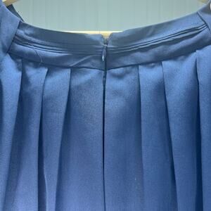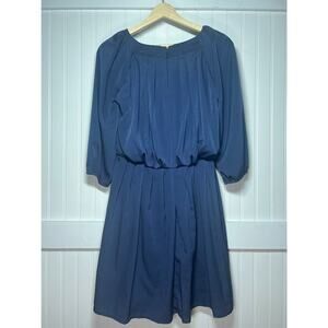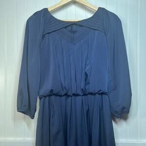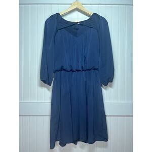 Jessica Simpson Navy Blue Pleated V-Neck Dress Classic A-Line Long Sleeve Zip