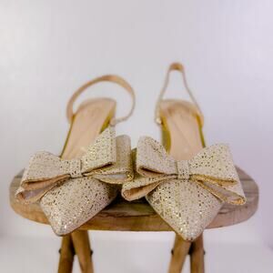 Jessica Simpson Nekira 3 Bow Heels Pumps Gold Classy Preppy Old Money Sz 8M NEW
