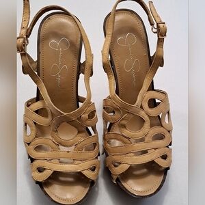 Jessica Simpson Nude Open Toe Leather Sandals Size 7 1/2