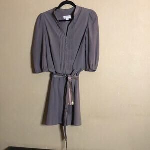 This is an adorable little Jessica Simpson gray tunic dress with a matching sequin and mini chains belt. It has an elastic waist and elastic around the sleeve ends. One button at the top. And, the rest are a faux buttons front with pleats. It is in excellent conditon. Belt is missing a couple of tiny chains. So super super cute. It is a size 8.