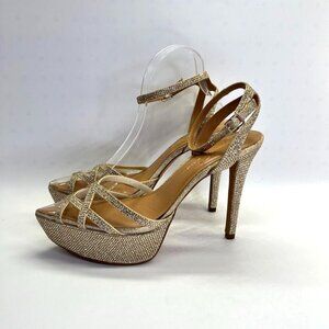 Jessica Simpson Oluina Platform Pump Size 9.5 Embellished Gold 5" Heel