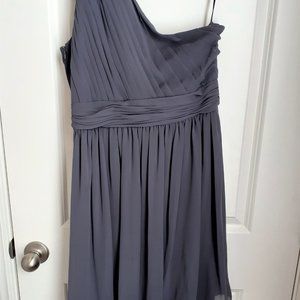 Medium Gray Colored Pleated Chiffon Dress with Beaded Embroidery on Left shoulder. One shoulder dress. Very light, perfect for guest at a summer wedding.