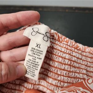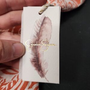 This stunning Jessica Simpson dress is perfect for any fashion-forward woman. The orange floral pattern is made from high-quality linen material, ensuring both comfort and style. The dress is designed to fit any occasion, from a casual day out to a formal event. The brand name speaks for itself, as Jessica Simpson is known for her exceptional style and talent. This dress is a must-have for any wardrobe, and its beautiful flower theme will make you feel confident and beautiful.