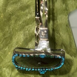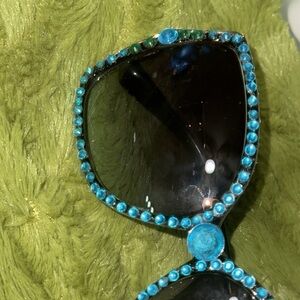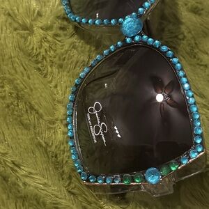 Jessica Simpson Oversized Handmade Bejeweled Blue/Green Gemstone Sunglasses