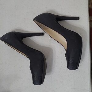 Jessica Simpson PARISAH black textured platform heels size 7. These shoes offer a sleek and sophisticated look.