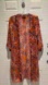 Burnt orange color with an allover paisley flower print in fuchsia purple, white, blue, pink, and golden yellow colors.