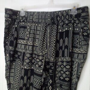 Jessica Simpson Pants Women XL Elastic Waist Pull On Pockets Pattern Black White