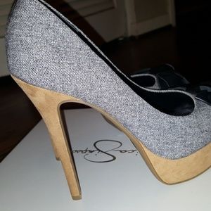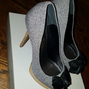 Tailor Grey/Schoolgirl Fabric Size 7 open toe platform heels. Never worn!
