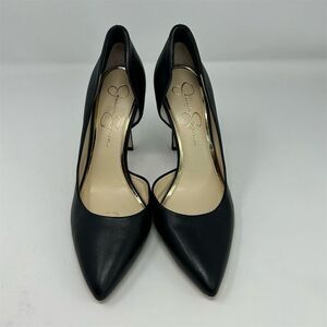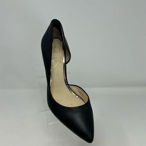 Jessica Simpson Paryn Classic Black Leather D'Orsay Stiletto Heels Size 9.5 Pointed Toes