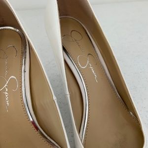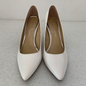 Jessica Simpson Patent Leather Pointed Toe Heels in White Size 6 1/2