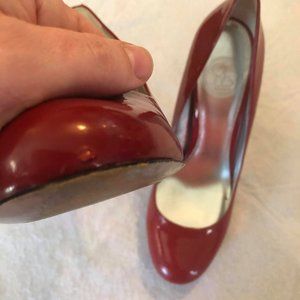 Jessica Simpson patent leather red pumps. Size 8. Small nick on one toe seen in picture.
