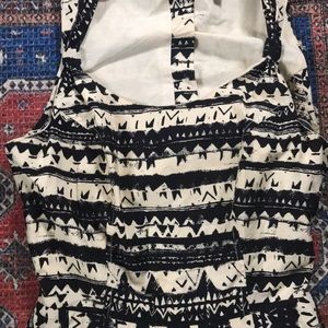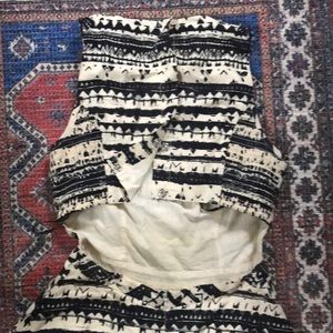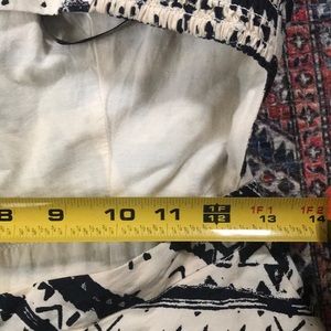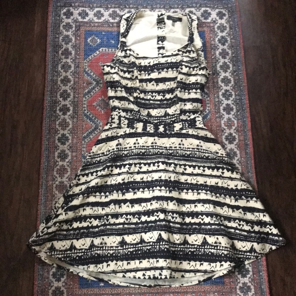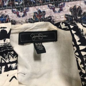 Size 9/10 Aztec navy blue and cream Jessica Simpson dress. Peep hole back with snap buttons and zipper. Waist measures 25”. Skirt length 20”.
