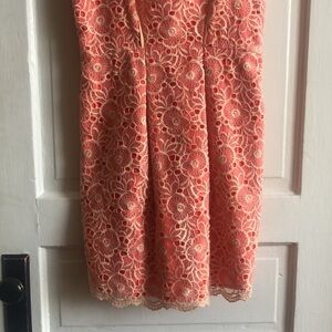 Jessica Simpson Peach Pink Floral Lace Halter Sheath Mini Cocktail Dress