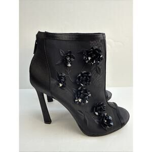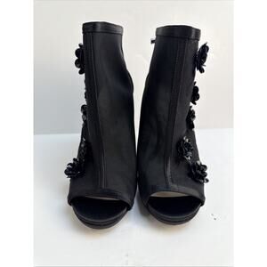 Jessica Simpson Pedell Black Fine Mesh Crystal Satin Heel Booties 6 M NWB