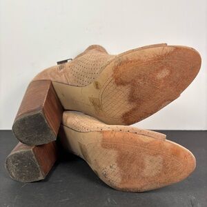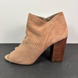 Jessica Simpson Peep Toe Booties Tan Suede Size 10M Block Heel Perforated