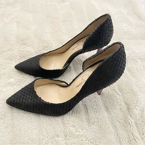 Jessica Simpson Pheona Pump Black Leather Pointed Toe Stiletto Heels Size 9