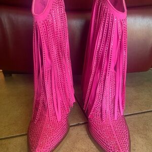 Jessica Simpson Pink Paredisa Rhinestone Fringe Western Booties SZ 7M