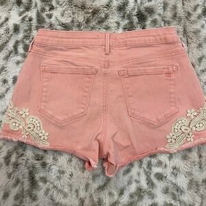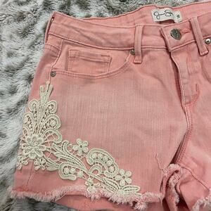 Jessica Simpson Pink & White Lace Cut-Off Shorts โ Size 26